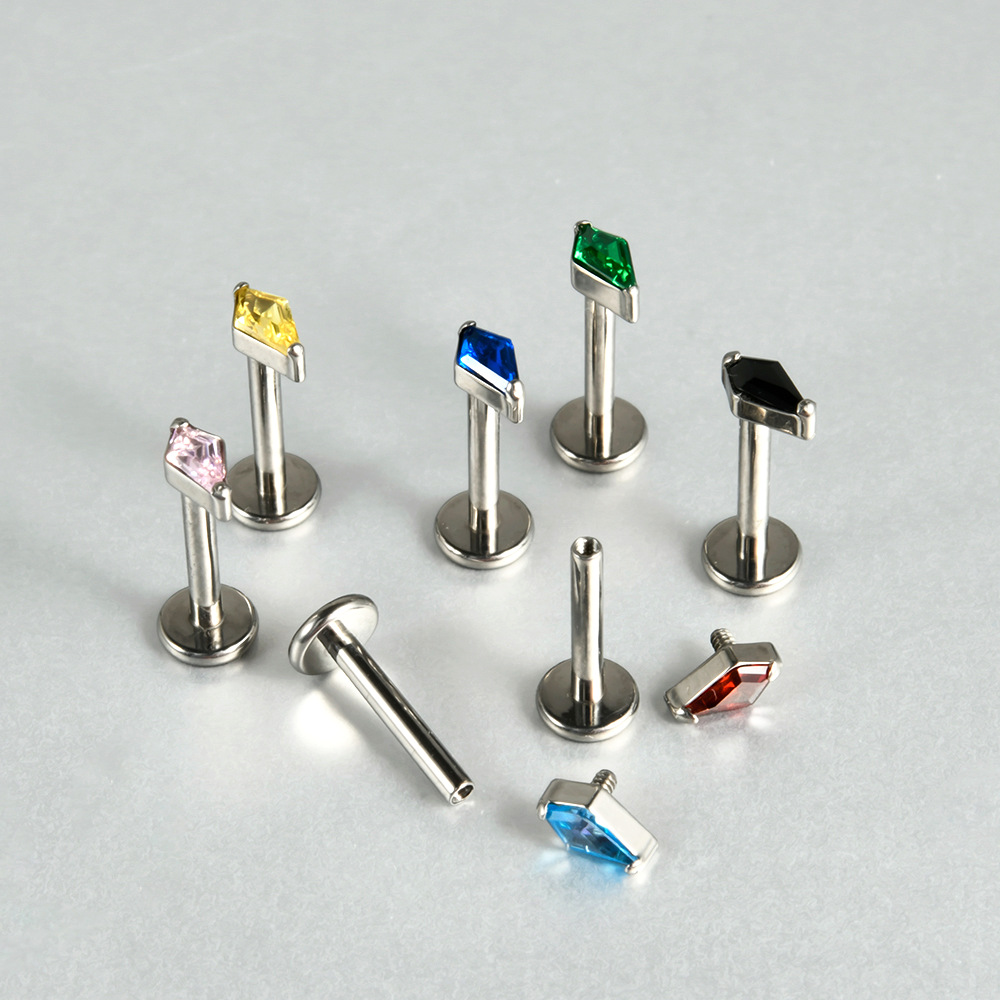 G23 Titanium Prong Setting Internal Threaded Labret Ring Surgical Stainless Steel Body Piercing Jewelry