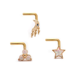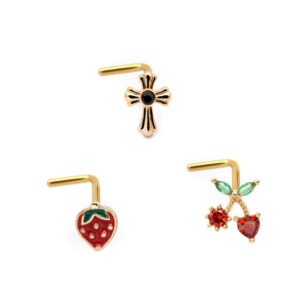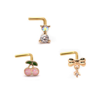 316L Surgical Stainless Steel Cat Design L-bend Sex Nose Ring Studs Cute Rings Piercing with clear High Quality Gem Stone